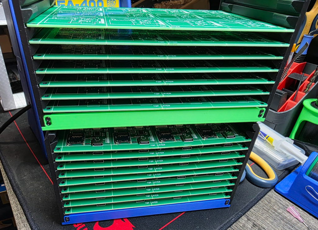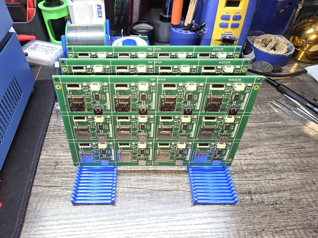 All of the bare PCBs have been populated. Tomorrow will begin quality inspection, testing, and final assembly.